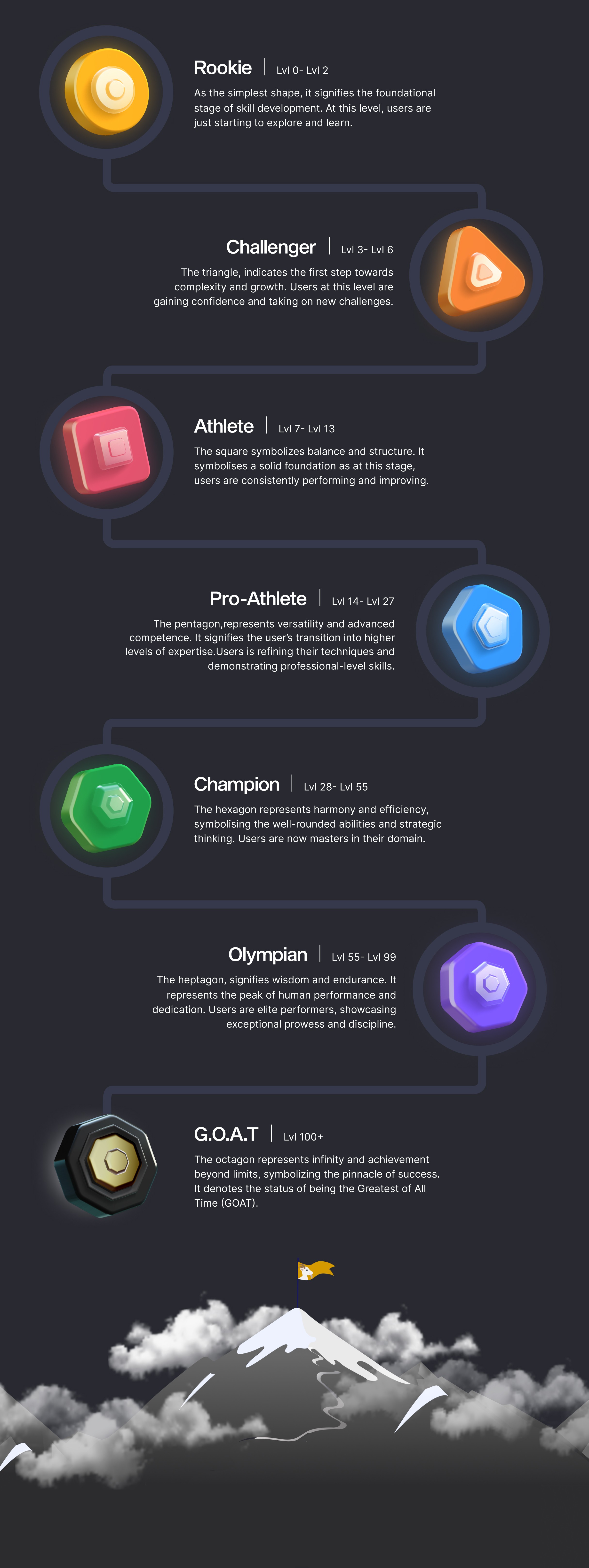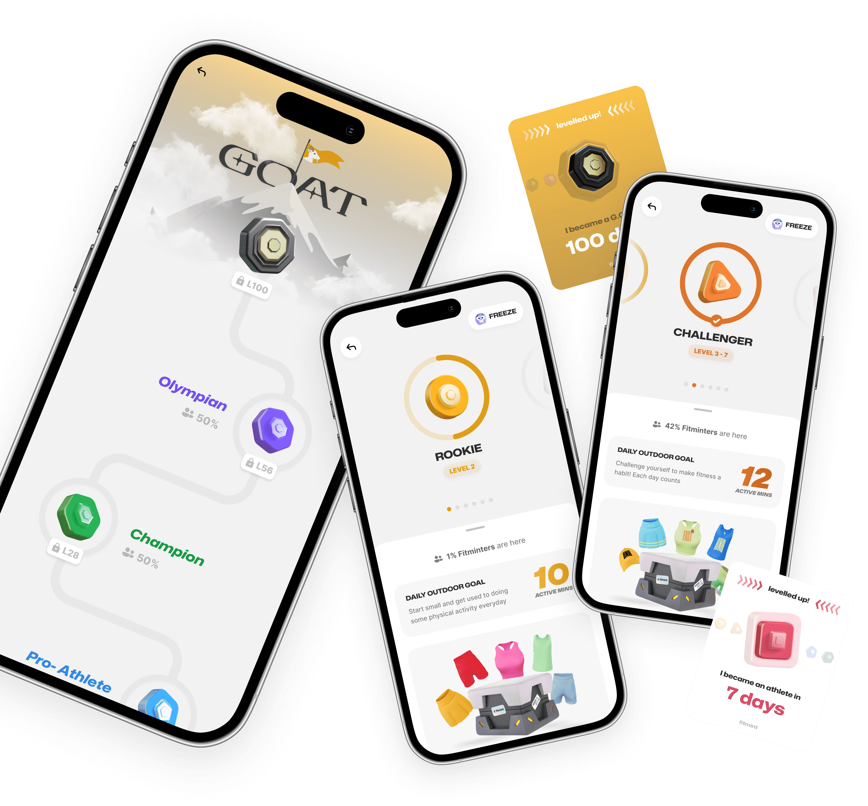 Badges serve as a rewarding way to celebrate user achievements and visualize progress. During the development of Fitmint, we recognized the need to effectively communicate users' achieved levels and goal completions through visual means