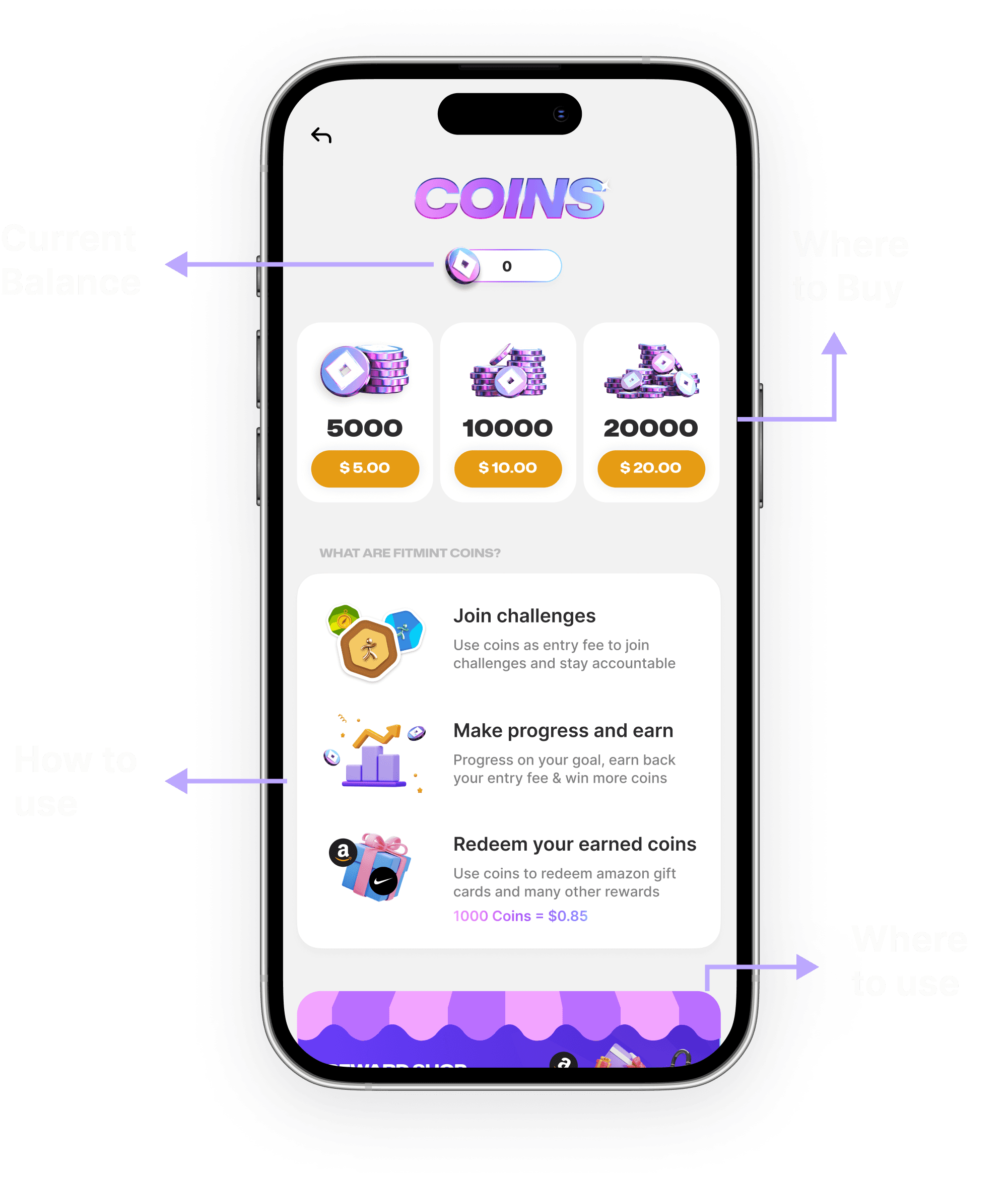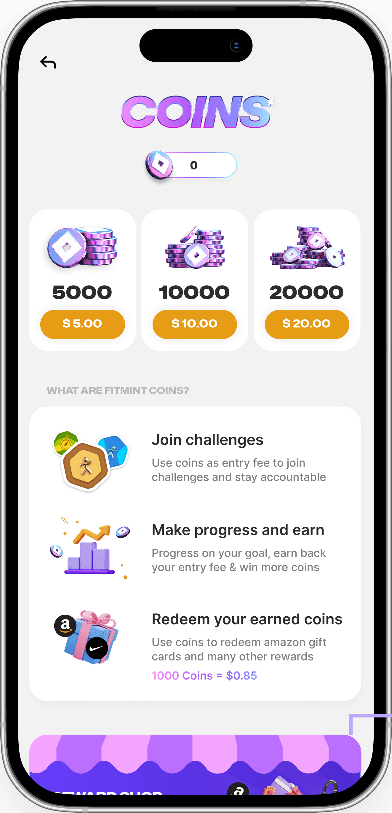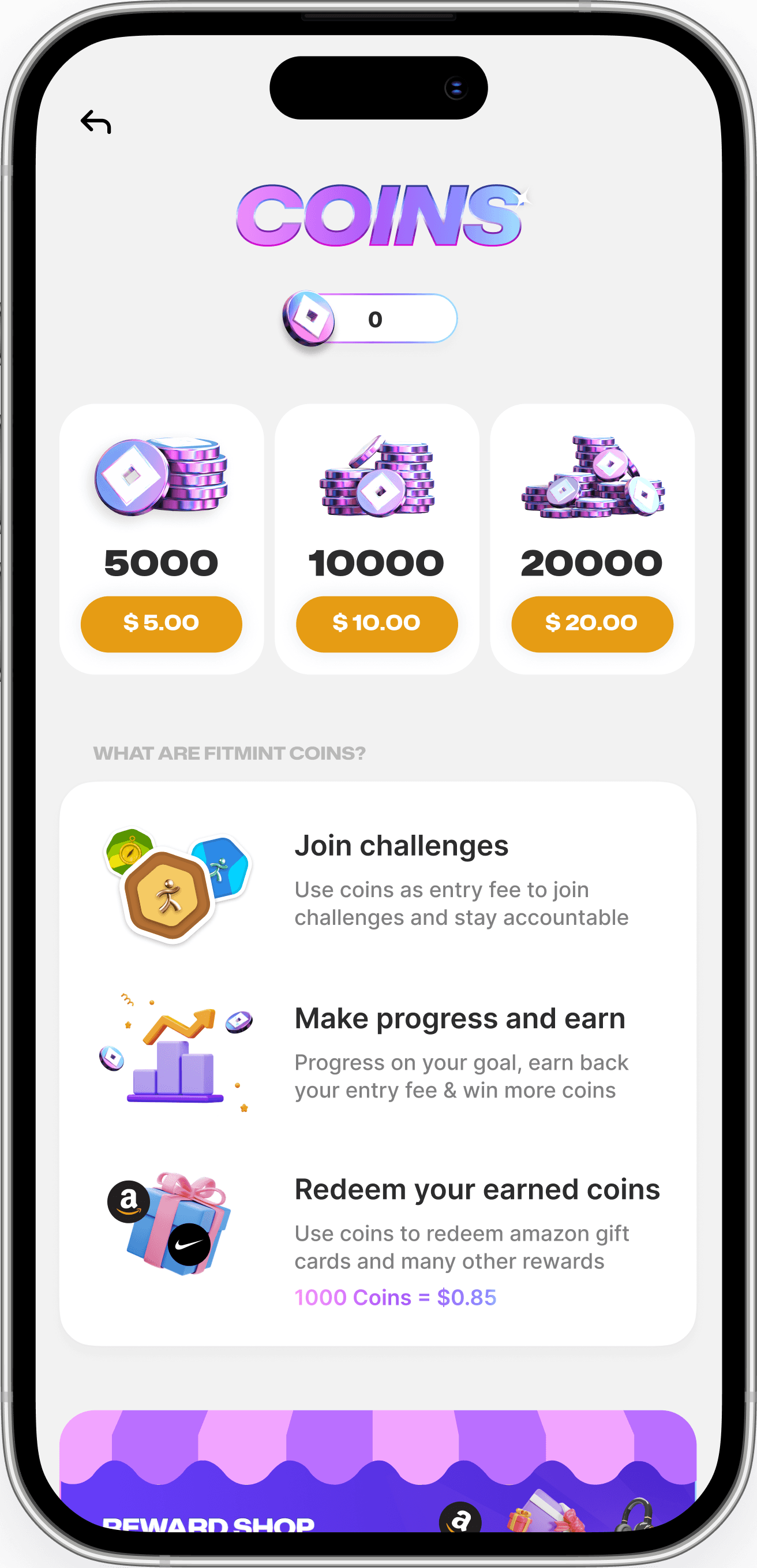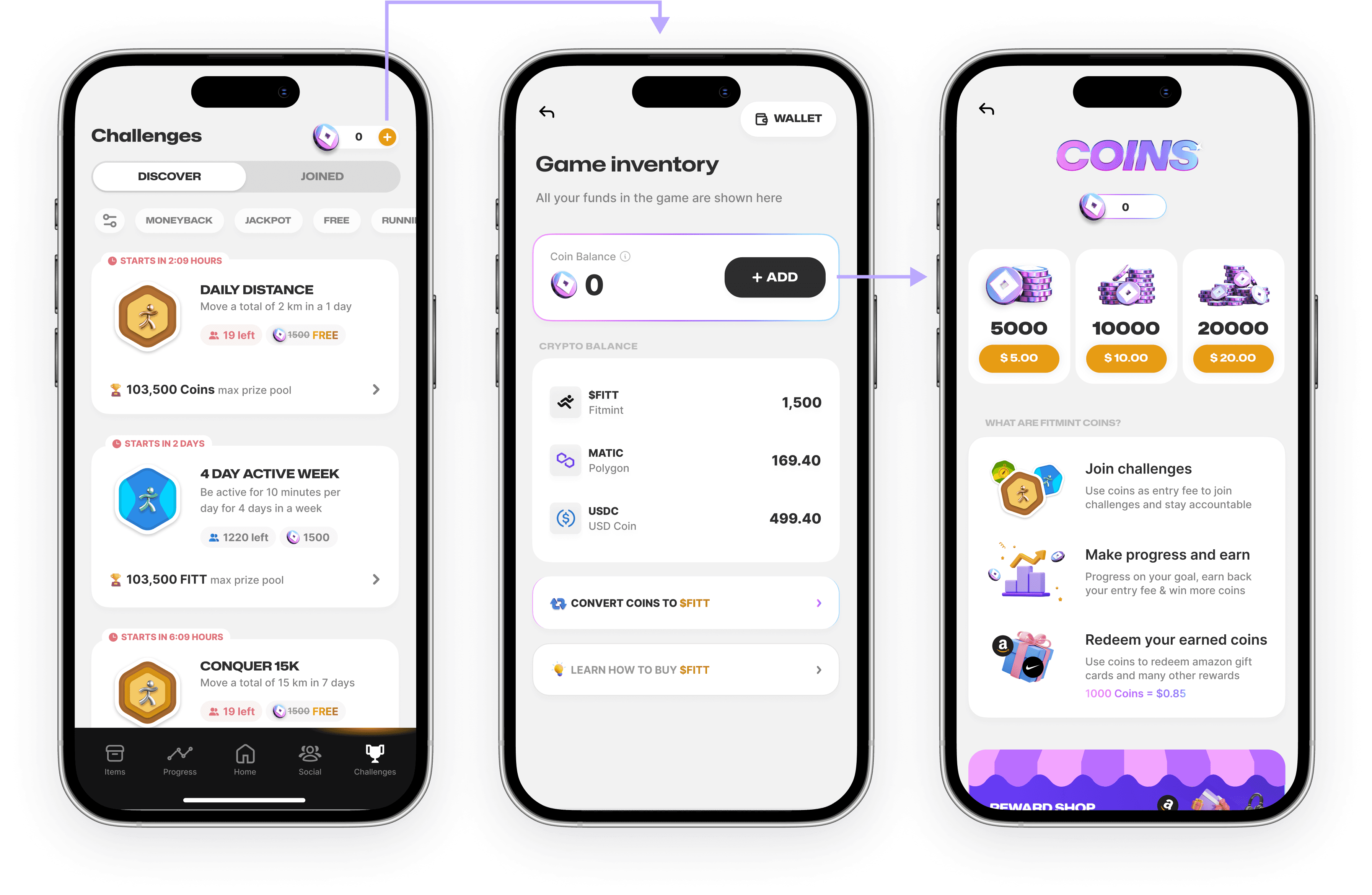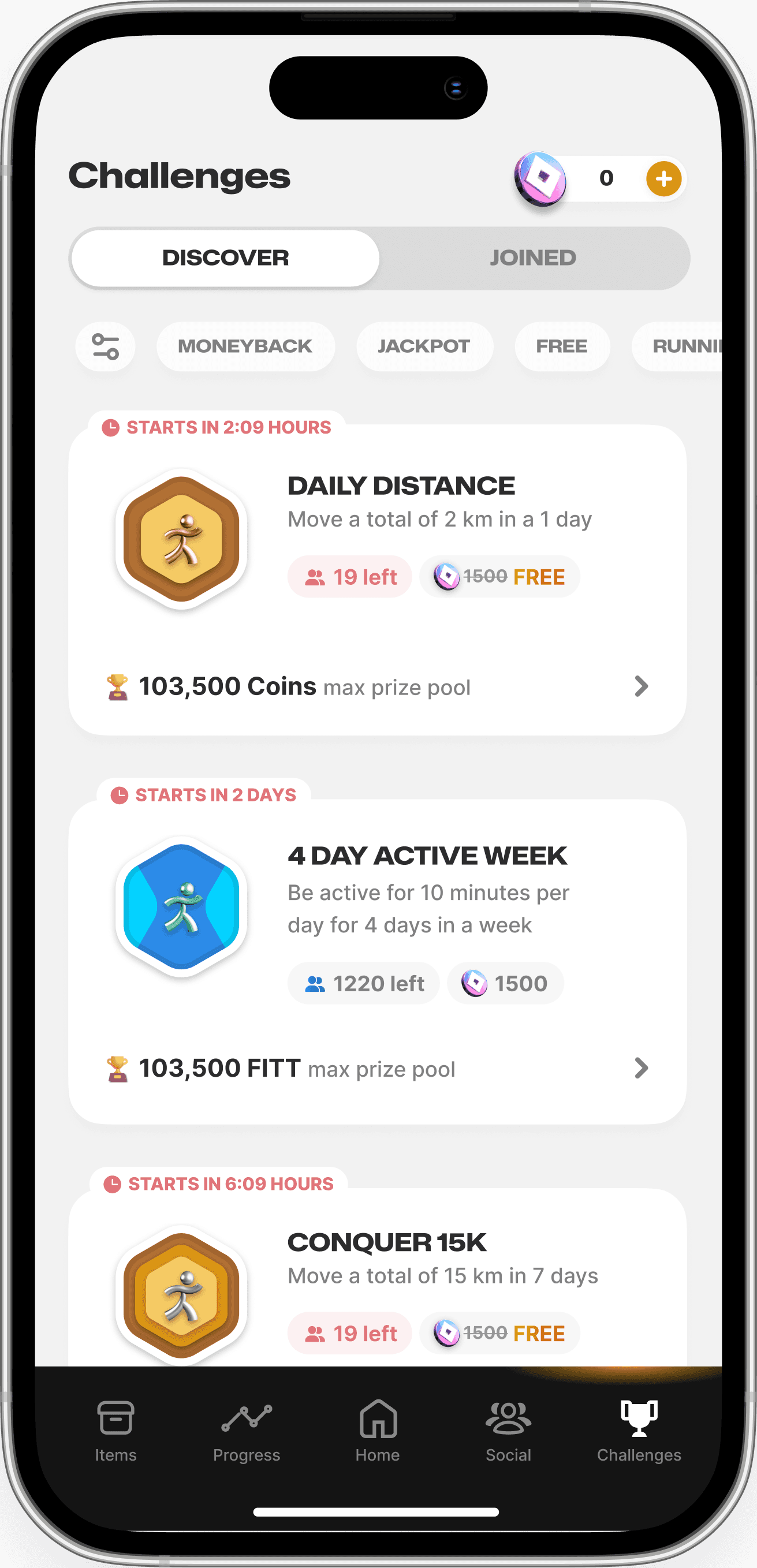 Use coins to join challenges & start your fitness journey