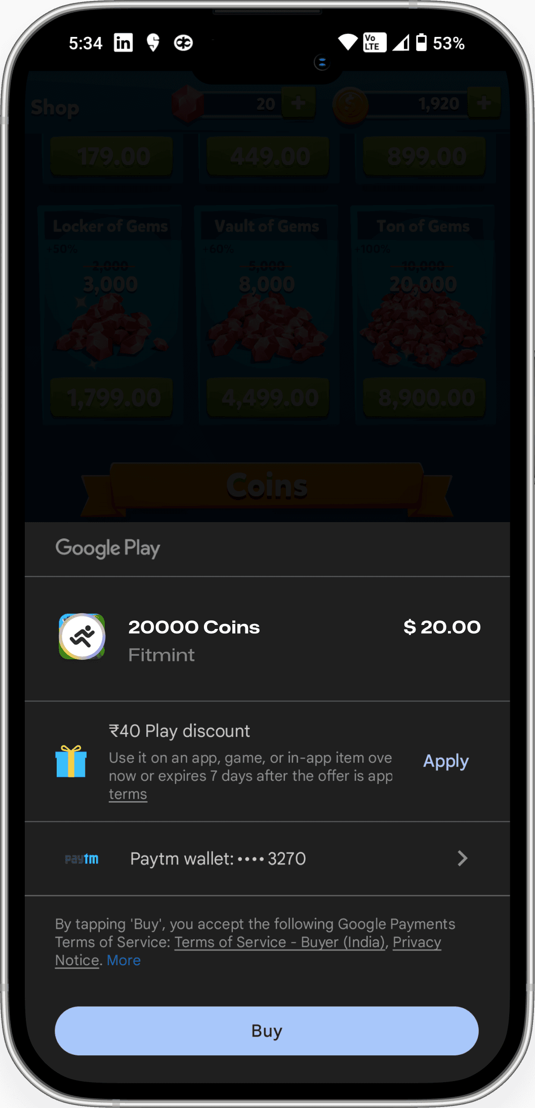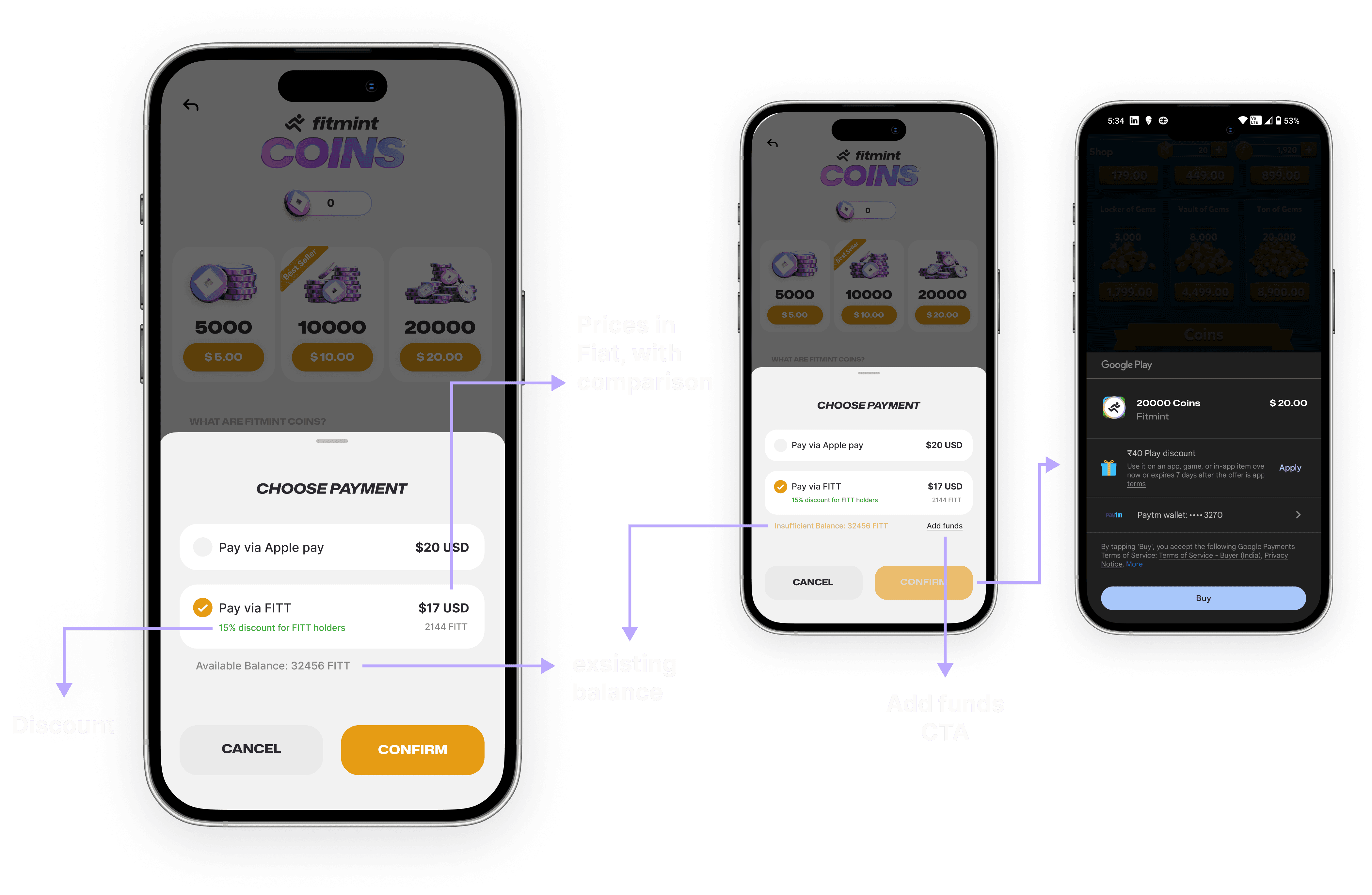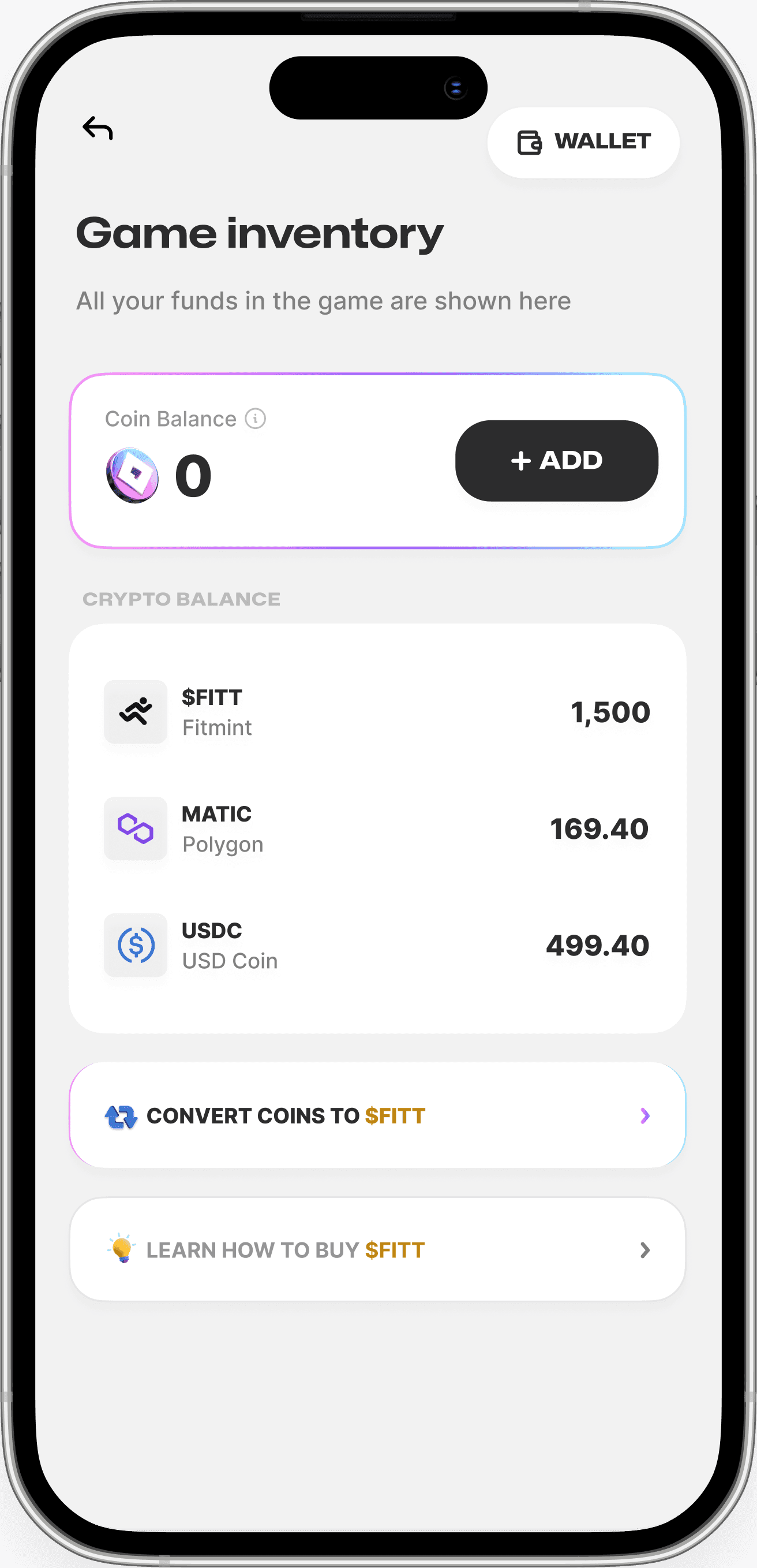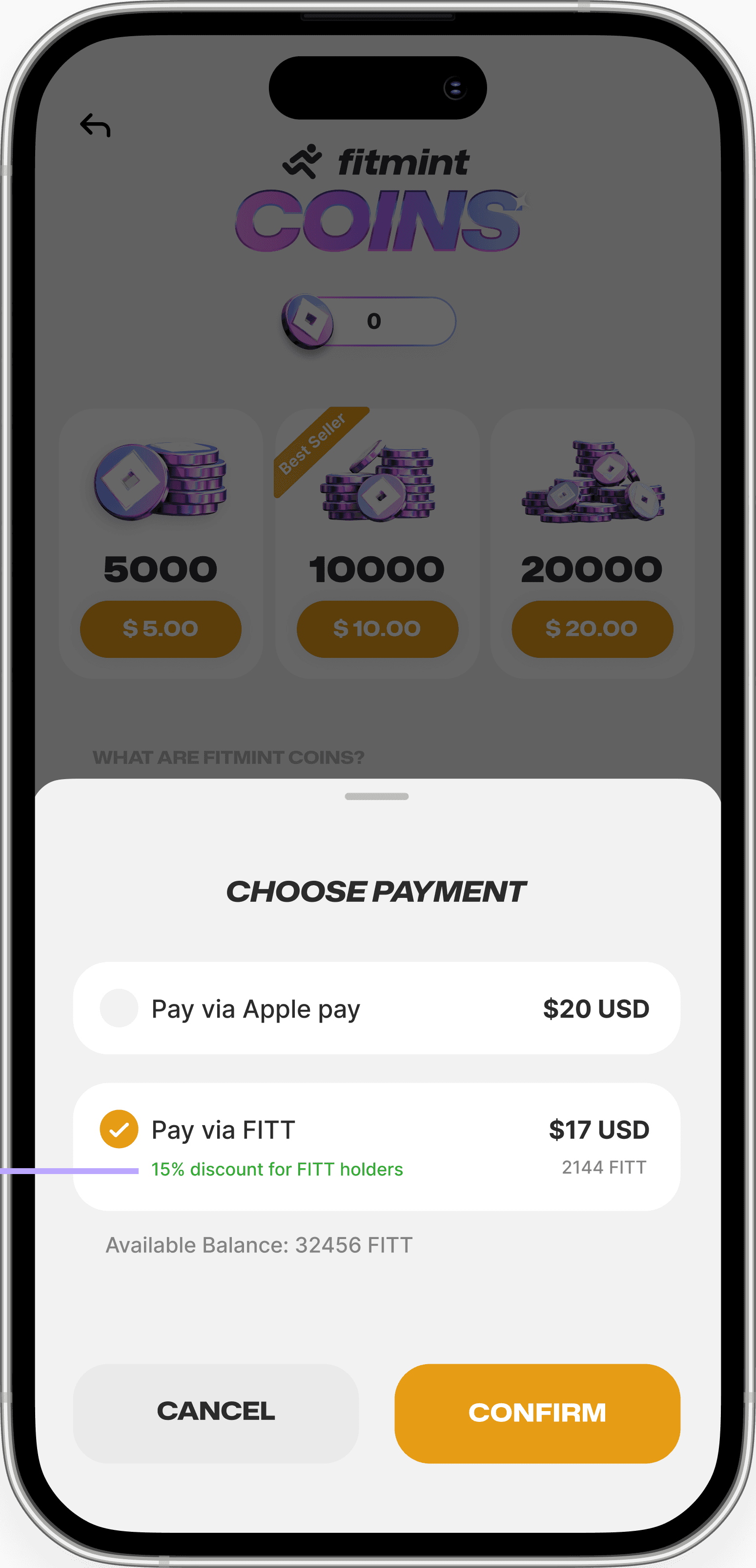 You can buy coins either via $FITT or with your local currency