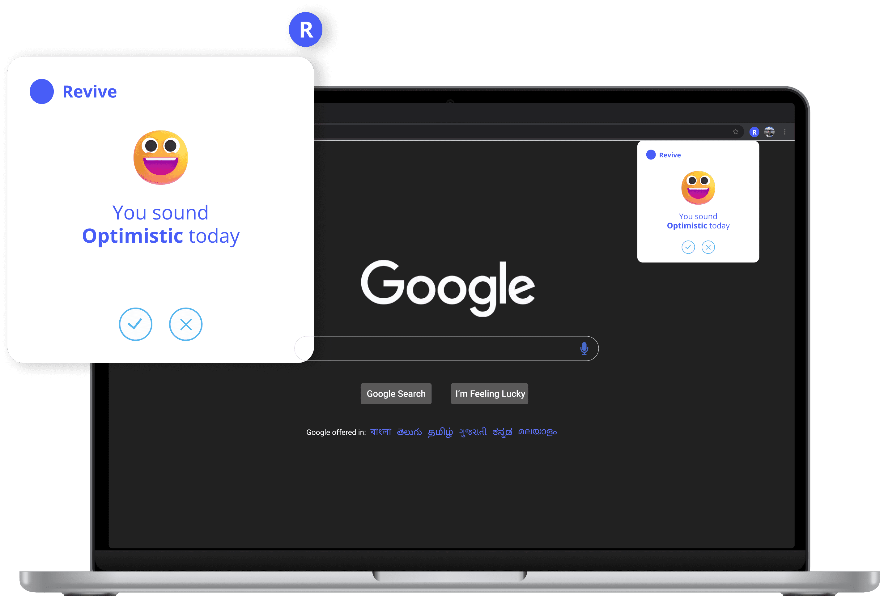Revive takes constant feedback from the users by its chrome extension, it tracks the users tone and at the end of the day prompts the users to give feedback