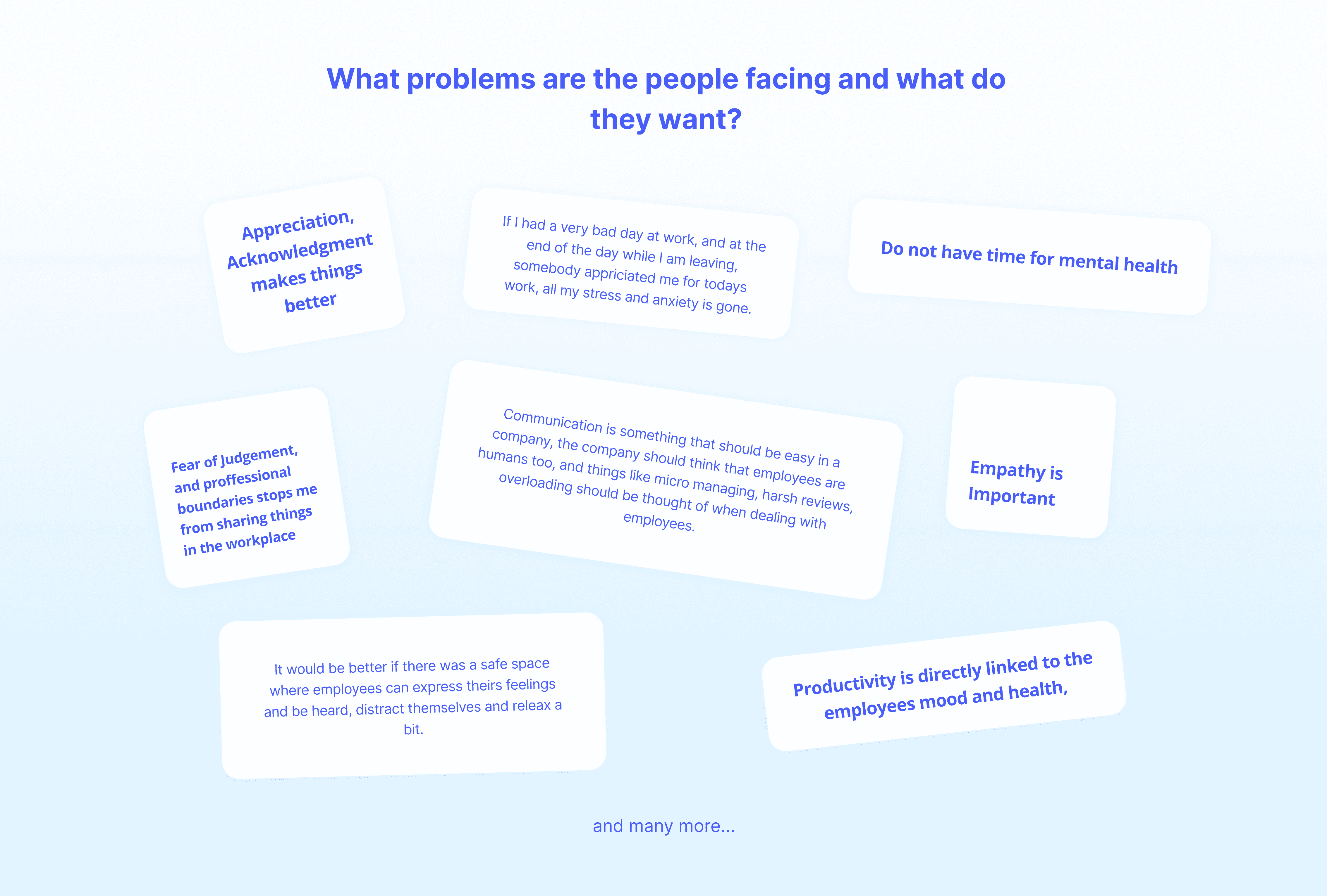 During an Interview got an opportunity to design an app which focuses on mental wellbeing of employees in an workspace. It was a timed project, and required me to follow the whole UX process, from user interviews till the protopype. The app is vagley inspired by grammarly’s concept to ananlysis the employees mood & tone.